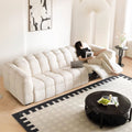 ソファーは厚みのあるクッションと肉厚の座面を持ち、ウレタンとポリエステル繊維の素材が快適な座り心地を提供しそうです。また、膨らみのある背もたれは体を支えるための十分なクッション性を確保していそうです。