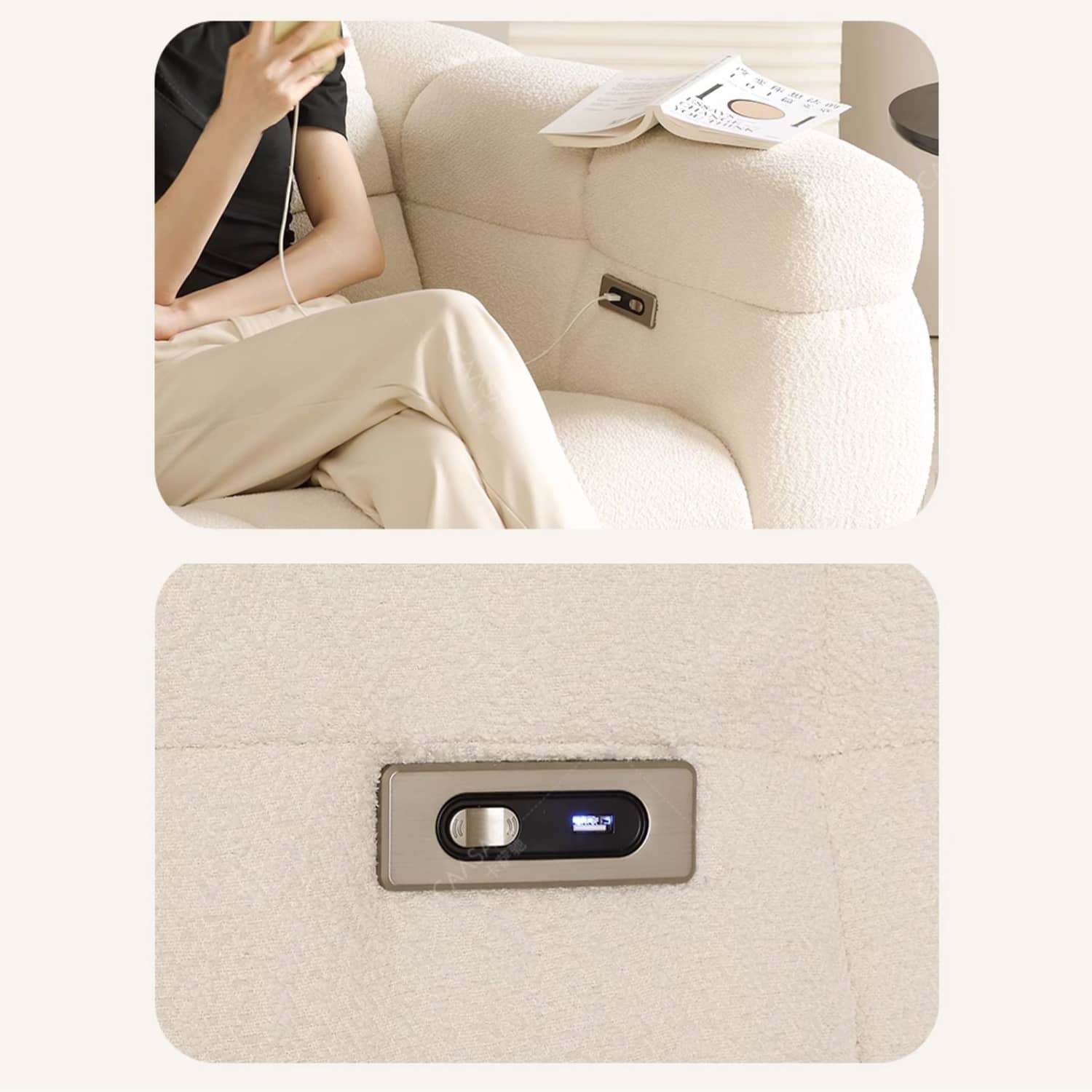 電動ソファー 布張りシープボア生地リクライニン機能 hksc-991