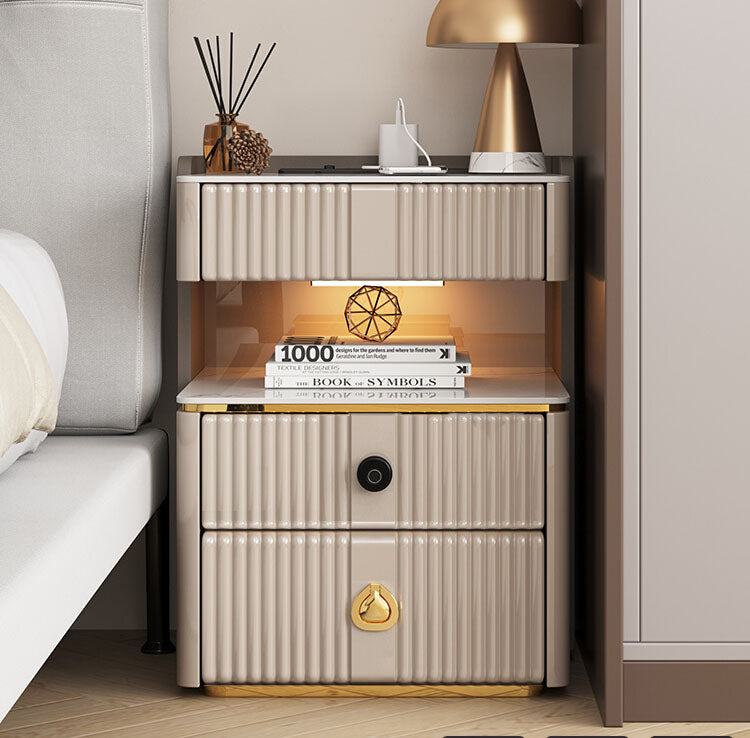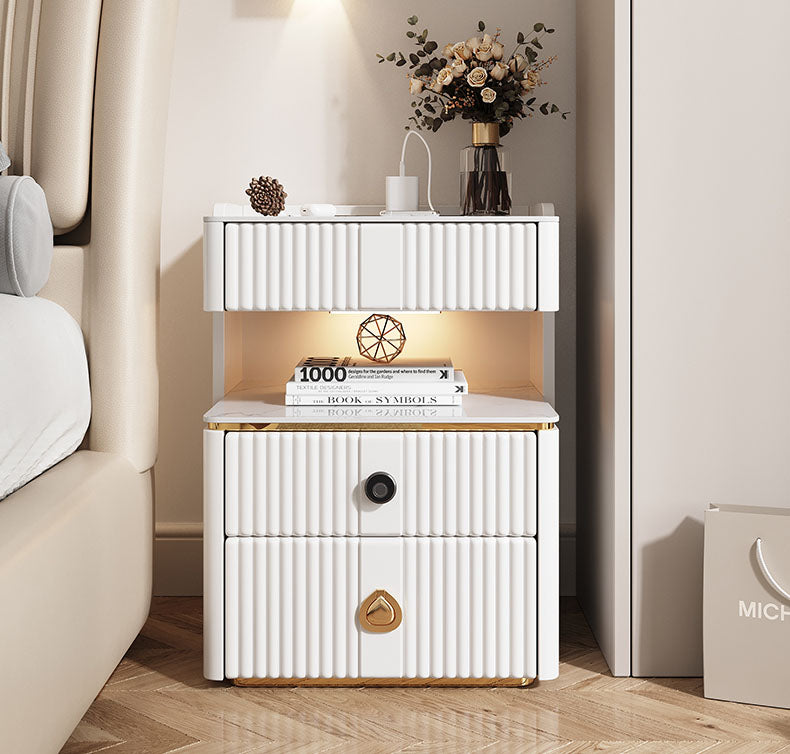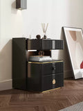 無垢材とセラミック製の高級ナイトテーブル - 天然木の風合いとモダンデザイン hmq-1919