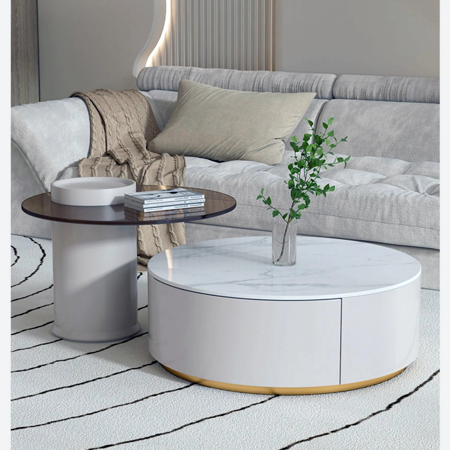 高級セラミックとガラスを組み合わせたセンターテーブルは、洗練されたリビング空間を演出します。集成材と金属フレームの堅牢な構造が耐久性と安定感を確保し、長くご使用いただけます。シンプルでモダンなデザインは多様なインテリアに調和し、収納機能も備えた実用的な一台です。美しい素材の融合が日常に上質なアクセントを加えます。