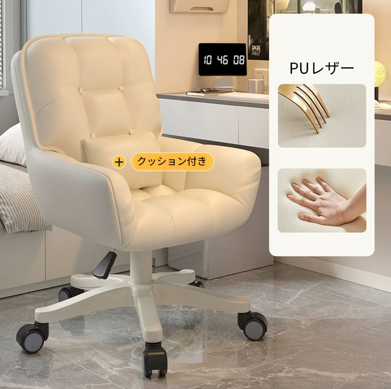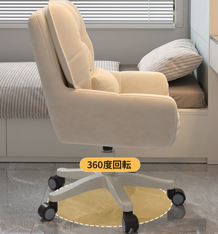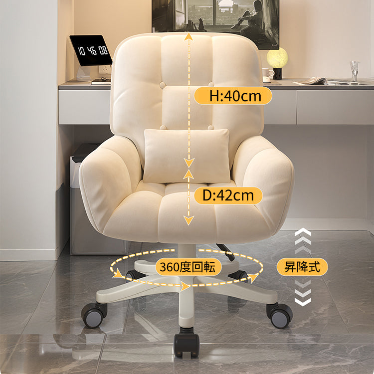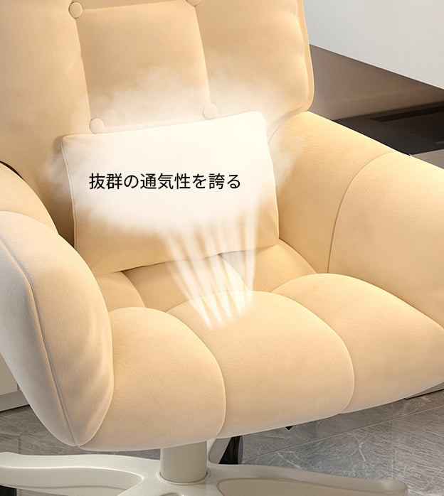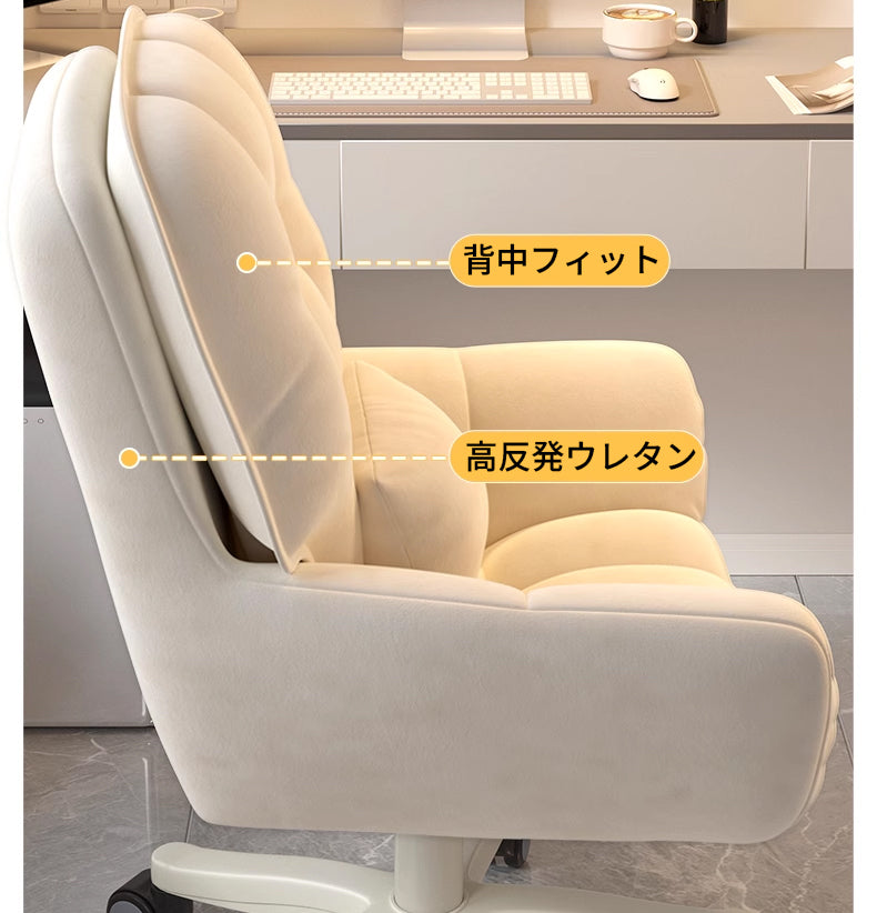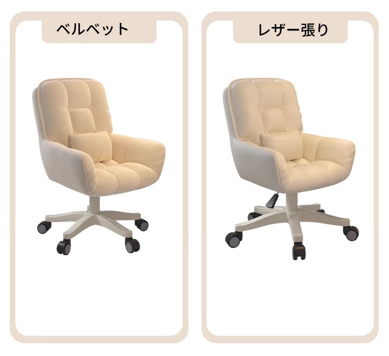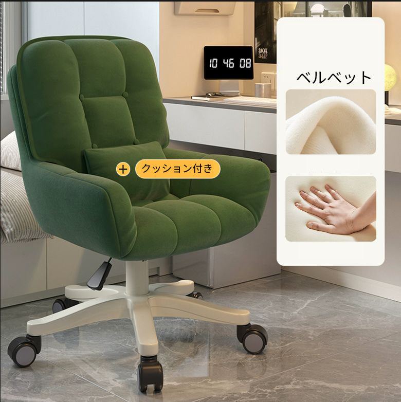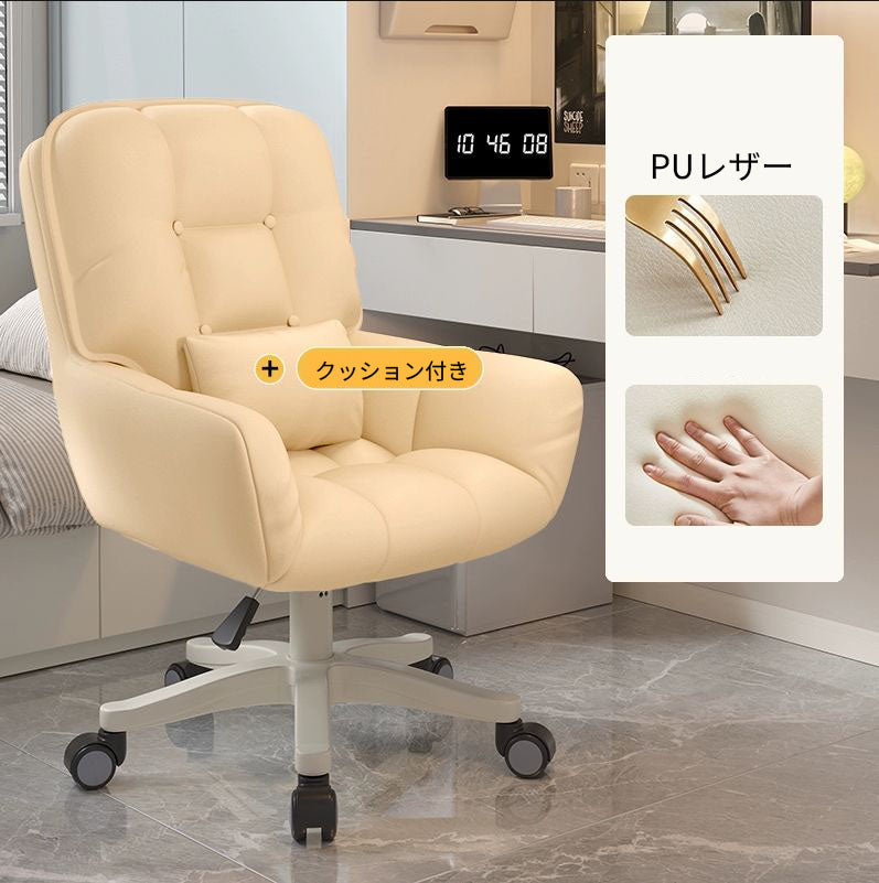このチェアは、ベージュ、グレー、ピンク、グリーン、カーキの5色展開で、お好みに合わせて選べます。シリコンフィルとラテックスを組み合わせたクッションが快適な座り心地を実現し、合皮とベルベットの上質な素材感が洗練された印象を演出します。モダンなデザインと高機能素材により、長時間の使用でも疲れにくく、暮らしに上品なアクセントを添えます。