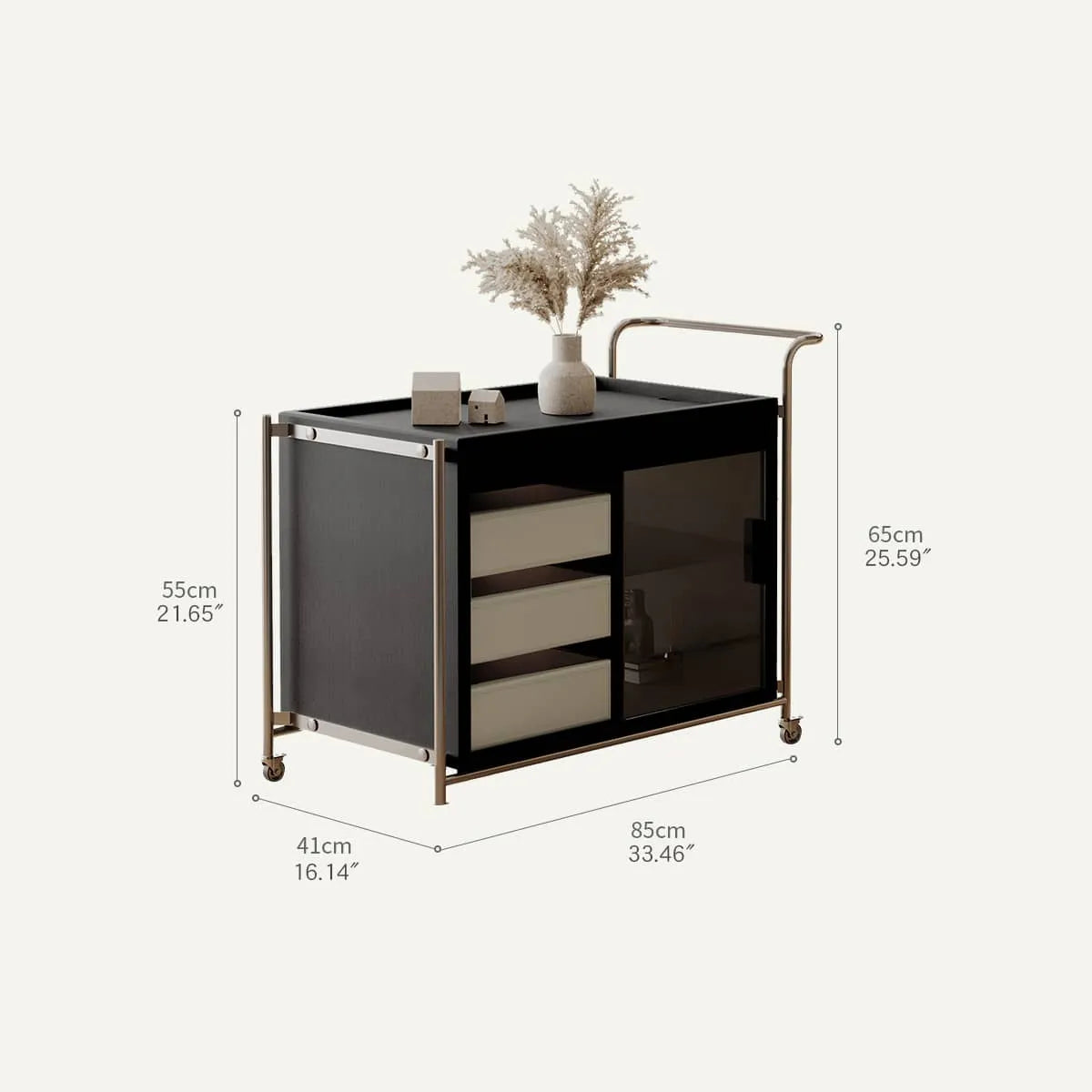 スタイリッシュなステンレス製カート|強化ガラスと合成皮革のモダンデザイン リビングキッチン収納 hxj-2706
