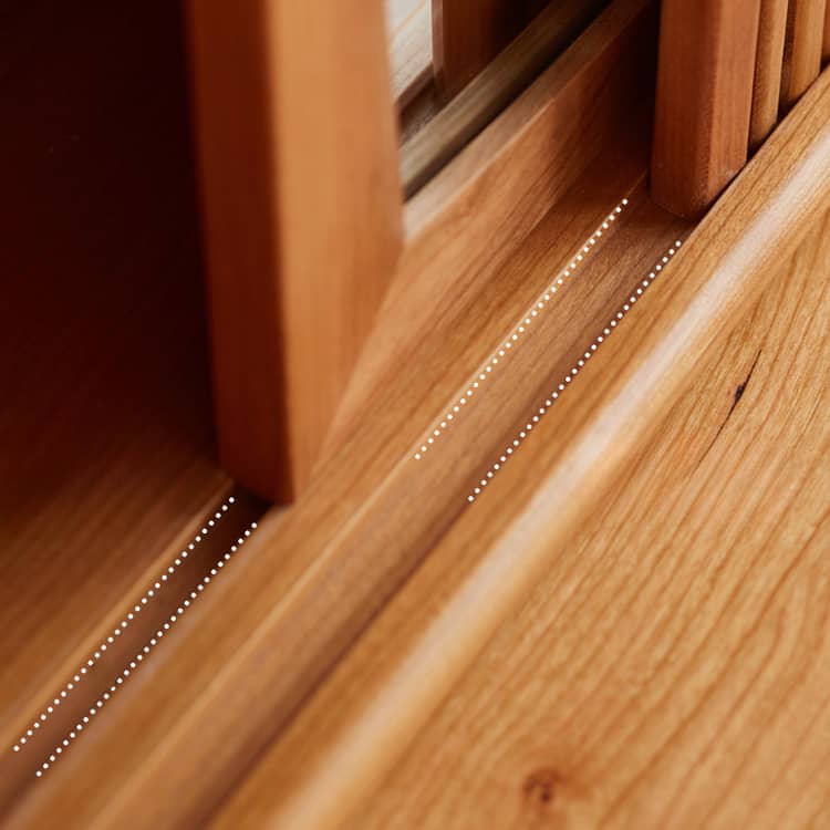 運搬上の都合や製造工程上、天板取り付け面に加工時に発生するスレ傷や研磨跡が見られる場合があります。組立て時の見た目に影響しないため、通常商品として提供させていただいています。ご理解の上ご注文くださいますようお願いいたします。