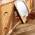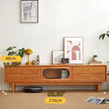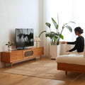 チェリー材の温かみと多層板の頑丈さが融合したエレガントなテレビ台です。スタイリッシュなガラス扉が収納物を美しく見せ、細部にこだわった銅製取っ手が高級感を添えます。スリムなラインが洗練された空間を演出し、長く使える耐久性も兼ね備えた一品で、リビングの格を上げます。