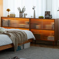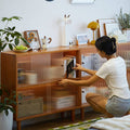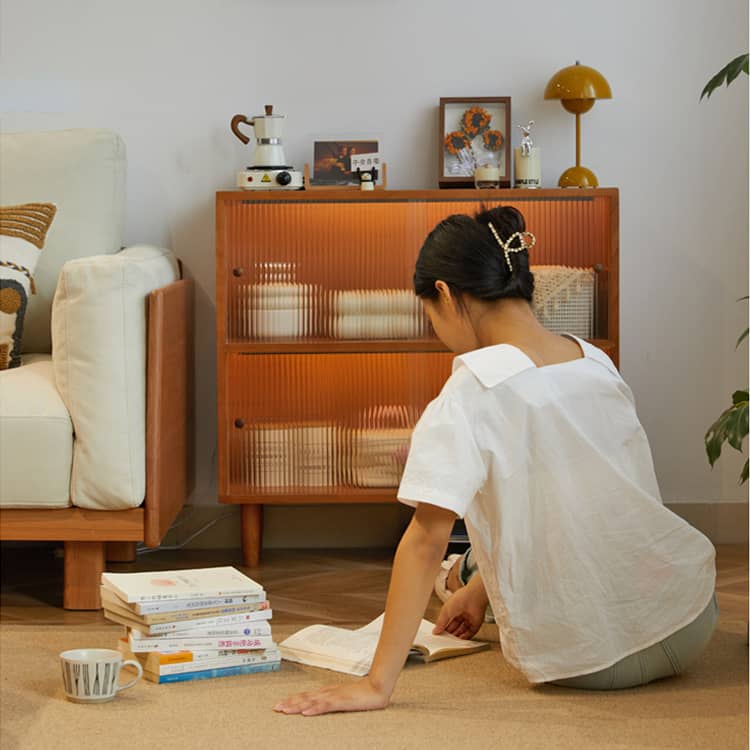 チェリー材とウォールナットの美しい調和が特徴の高級キャビネットです。強化ガラスドアで収納物を見やすく、どんなインテリアにも調和するナチュラルな風合いが魅力。耐久性と洗練されたデザインを兼ね備え、お部屋に温かみと高級感をもたらします。スタイリッシュさと実用性を両立し、整理整頓しながら上質な空間を演出できる理想的な収納家具です。