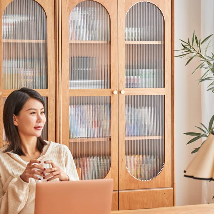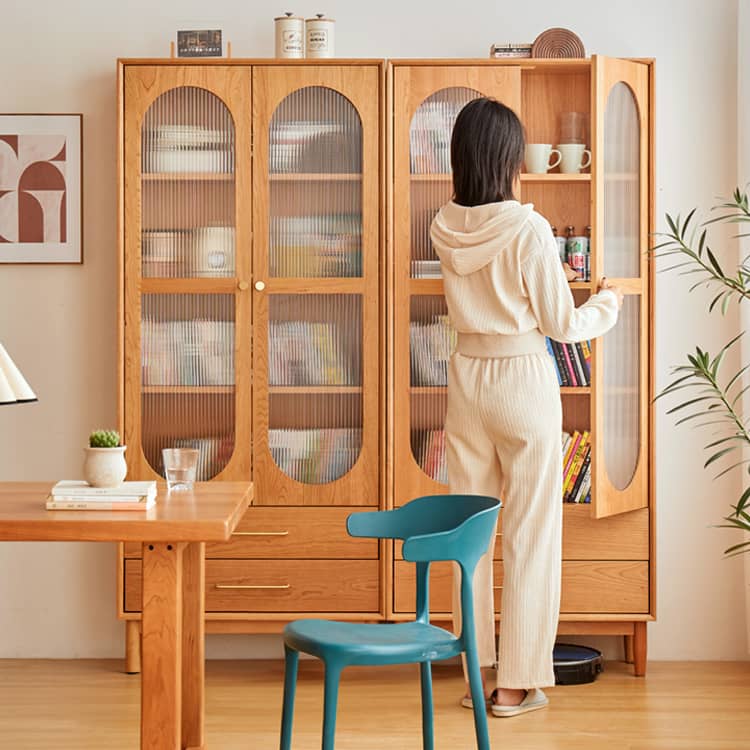 高級チェリー材と多層板を使用した本棚は、自然な木目の美しさと耐久性が魅力です。透明なガラス扉とアルミニウム合金、銅の細部が洗練されたアクセントとなり、大切な書籍や漫画をスタイリッシュに収納できます。優れた収納力とモダンなデザインが調和し、どんな空間にも上品な雰囲気をもたらします。確かな品質で長く愛用いただける逸品です。