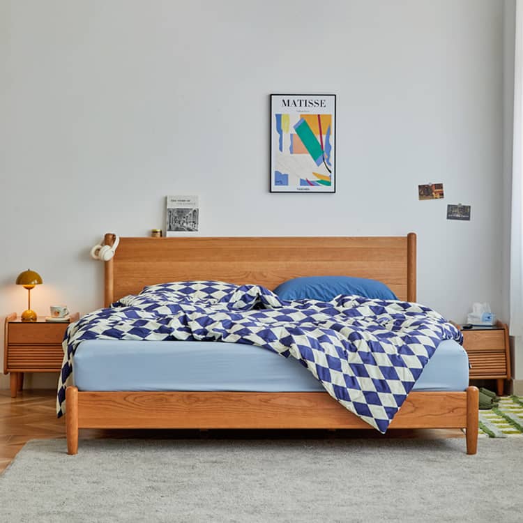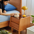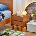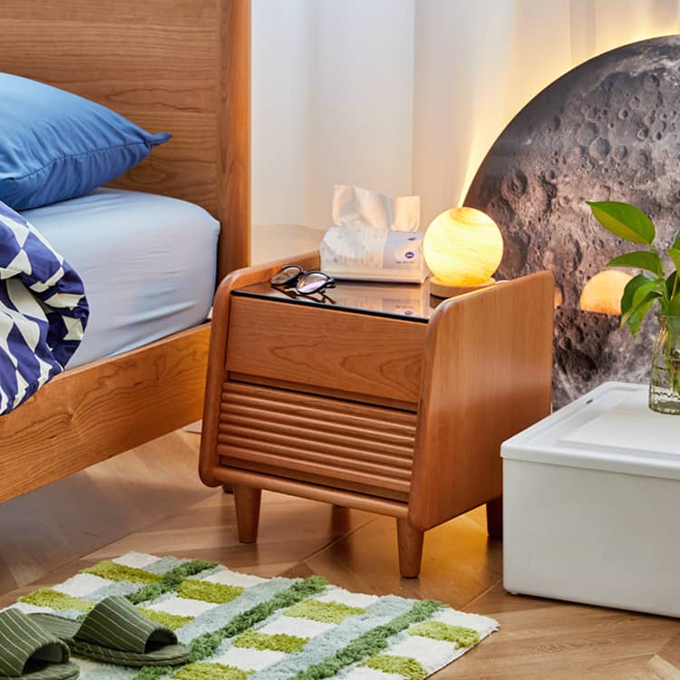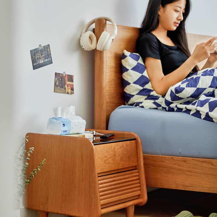 レッドオークとチェリー材を贅沢に使用したナイトテーブルは、上品な木目が織りなす温かみと高級感が特徴です。多層板とガラスの組み合わせにより、耐久性とスタイリッシュさを両立。ベッドサイドにぴったりのサイズ感で、十分な収納スペースを確保しながらも、モダンとクラシックが融合したデザインがどんなインテリアにも調和します。三種の素材が生み出す美しいコントラストが、お部屋のアクセントになります。