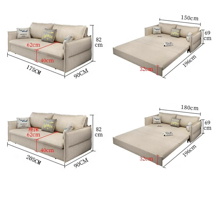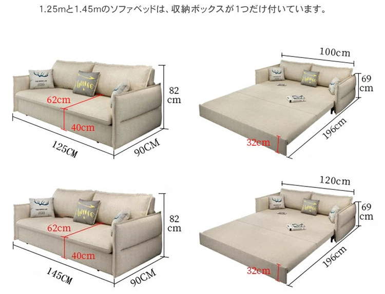 多機能性と快適さを兼ね備えたソファベッドです。綿麻混紡生地は肌触りが良く、季節を問わず使用できます。無垢材フレームとスチール脚の組み合わせで耐久性に優れ、モダンな雰囲気を演出します。ソファとしてもベッドとしても活躍し、限られたスペースを有効活用できます。下部の収納スペースは、寝具やクッションなどを整理整頓するのに便利です。家族の成長や生活スタイルの変化に対応できる、長く愛用できる一台です。