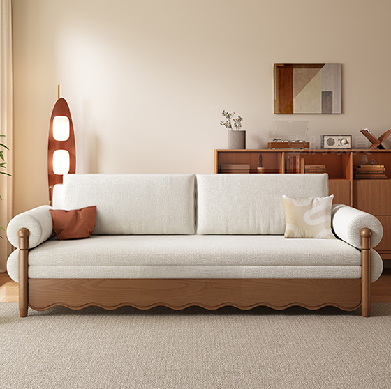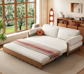 幅128cmと148cmの2人掛けソファベッドから、178cm、208cm、238cmの4人掛け対応サイズまで展開する高級感あふれるソファベッドです。天然のアッシュ材やパイン材の無垢材を使用し、上質なシェニール生地で仕立てました。柔らかく高反発のクッションが快適な横たわりを実現し、来客時にも重宝するデザインが魅力。伸縮機能で空間に合わせた使い方が可能です。洗練された色彩のブルーとグリーンがインテリアに上品な彩りを添えます。