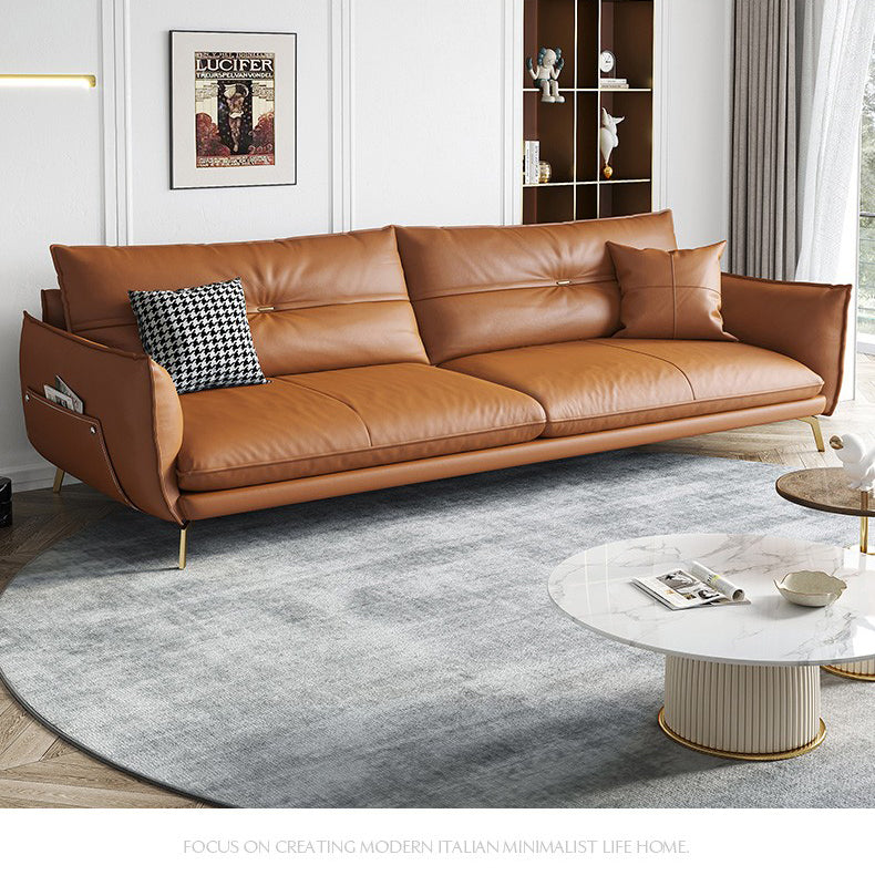 シンプルでモダンなデザインが魅力の高品質ソファー。キャメル色の合成皮革が上品な雰囲気を演出し、どんなインテリアにも調和します。ウレタンとシリコンフィルによる柔らかく快適な座り心地と、パイン材フレームと金属脚の堅牢な構造で長くご愛用いただけます。チェイス・ラウンジスタイルでゆったりとくつろげ、メンテナンスも容易。多彩なカラーコーディネートが楽しめる贅沢な一台です。