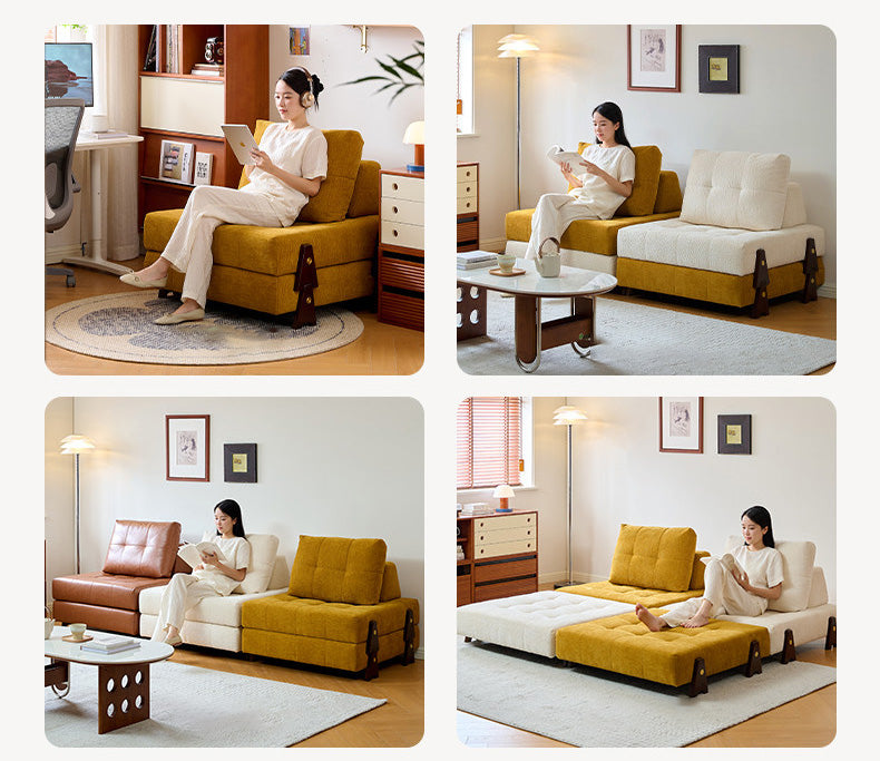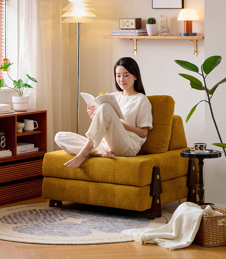 限られたスペースを最大限に活用したい方へ。このソファベッドは、昼間はくつろぎの1人掛けソファ、夜はゆったりとしたベッドへと変身します。積み木のように自由に組み替えられる設計で、お部屋のレイアウト変更も簡単。狭いアパートでも、快適さと機能性の両立を実現します。限られた空間を、もっと自由に使いこなせる、あなたの暮らしの相棒です。