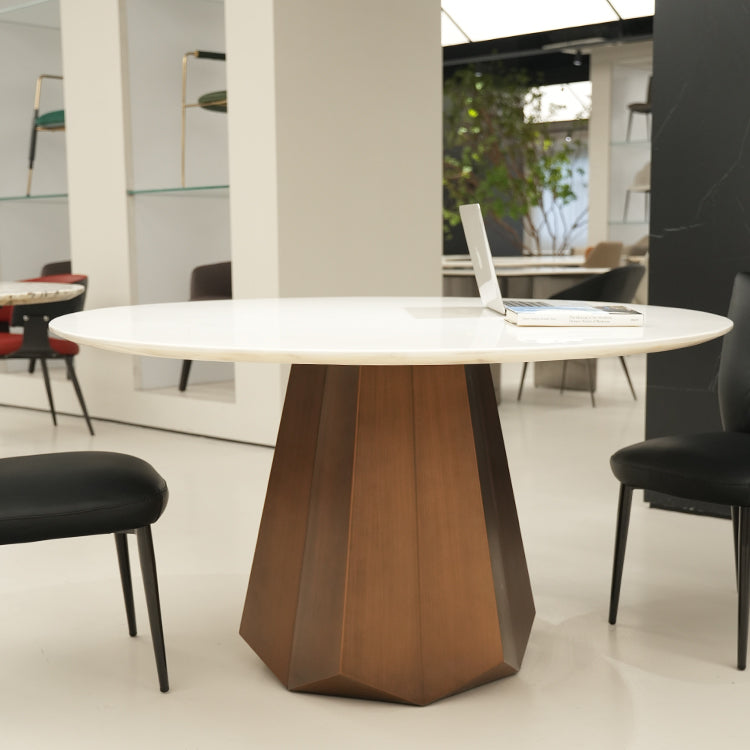天然大理石輸入家具 ラウンドテーブル 丸テーブル&スチール(真鍮)脚 おしゃれなダイニングテーブルjrjj-6503