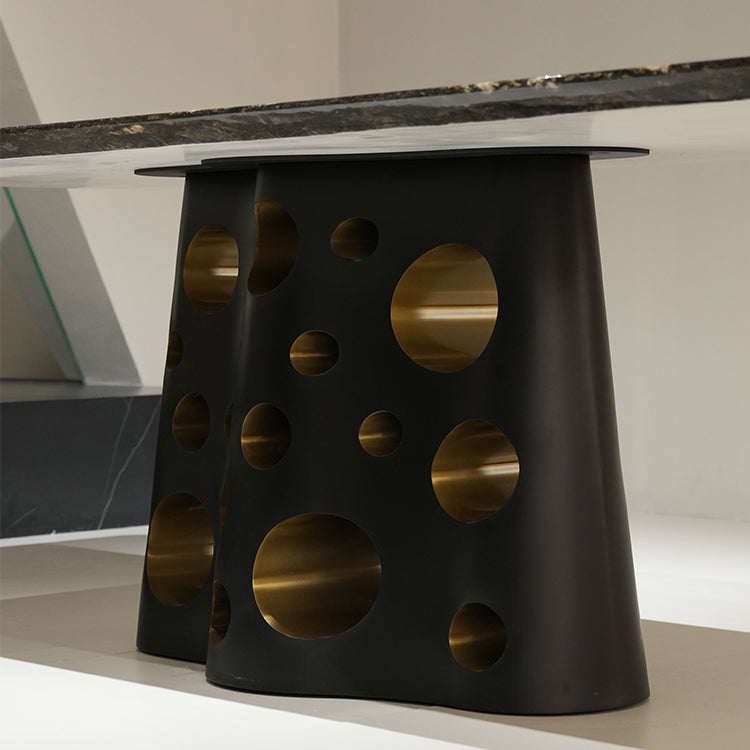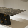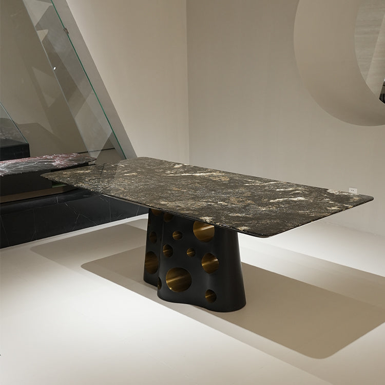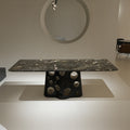 希少な天然大理石を使用した、ホテルのロビーを思わせるラグジュアリーなダイニングテーブルです。幻の宝石のような独特の天板は、光の当たり方で表情を変え、お部屋全体を上質な空間へと昇華させます。高級輸入品ならではの洗練されたモダンデザインは、どんなインテリアにも調和し、毎日の食卓を特別な時間に変えてくれます。一点物の美しさを備えた、真の贅沢をお楽しみください。