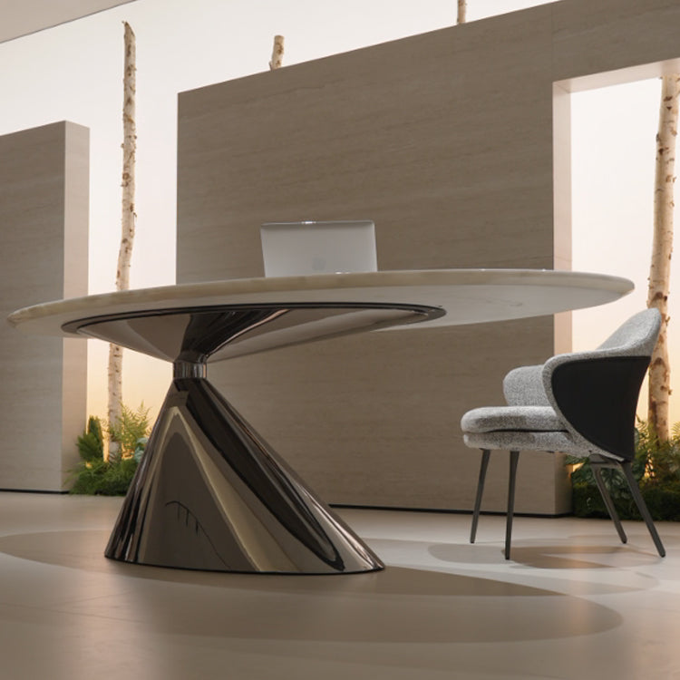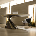 上質な空間を演出する楕円形天然大理石テーブルです。ホテルのロビーで見かけるような洗練されたデザインが、お部屋全体を格調高く引き立てます。天然大理石の独特の紋様は一点ものの美しさを備え、毎日の食卓やリビングを特別な場所へ。輸入高級家具ならではの職人技が随所に光り、長く愛用できる逸品です。モダンでエレガントなインテリアをお探しの方に、心からおすすめします。