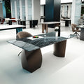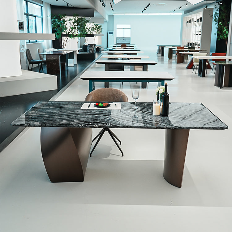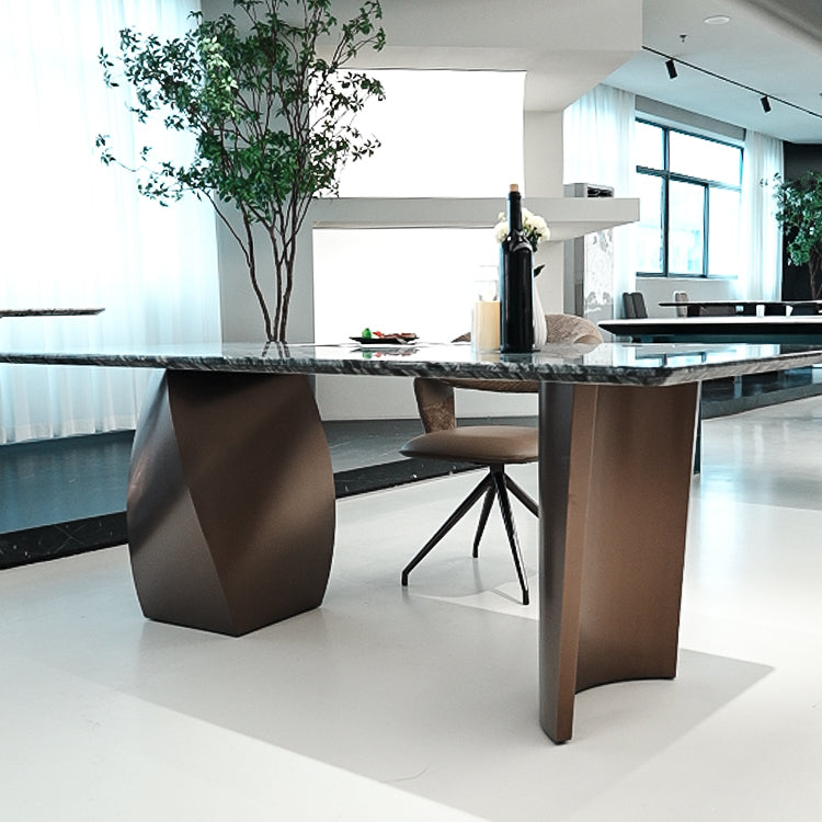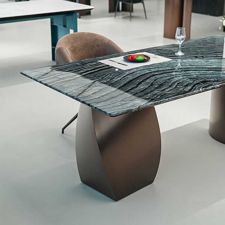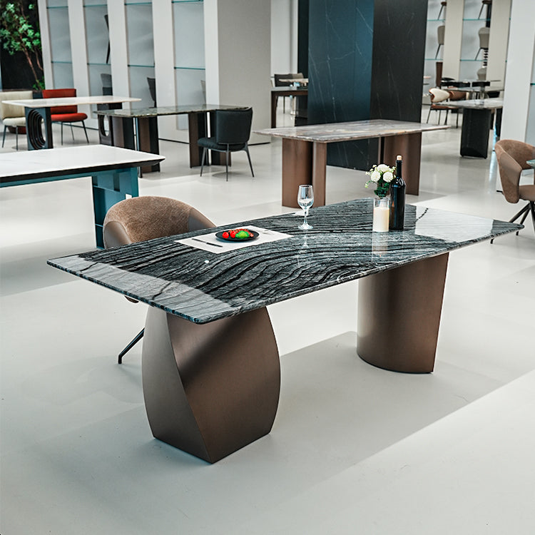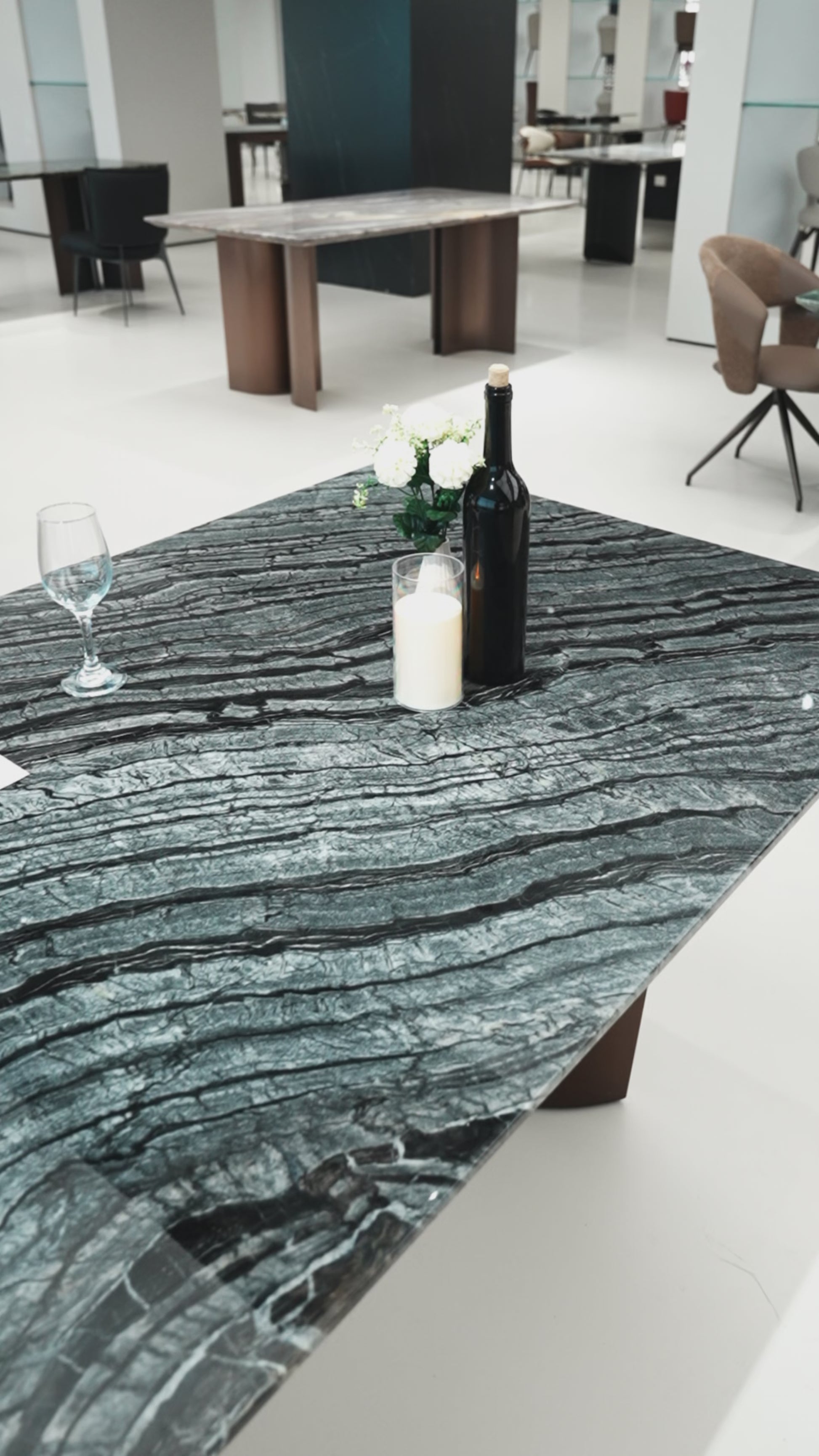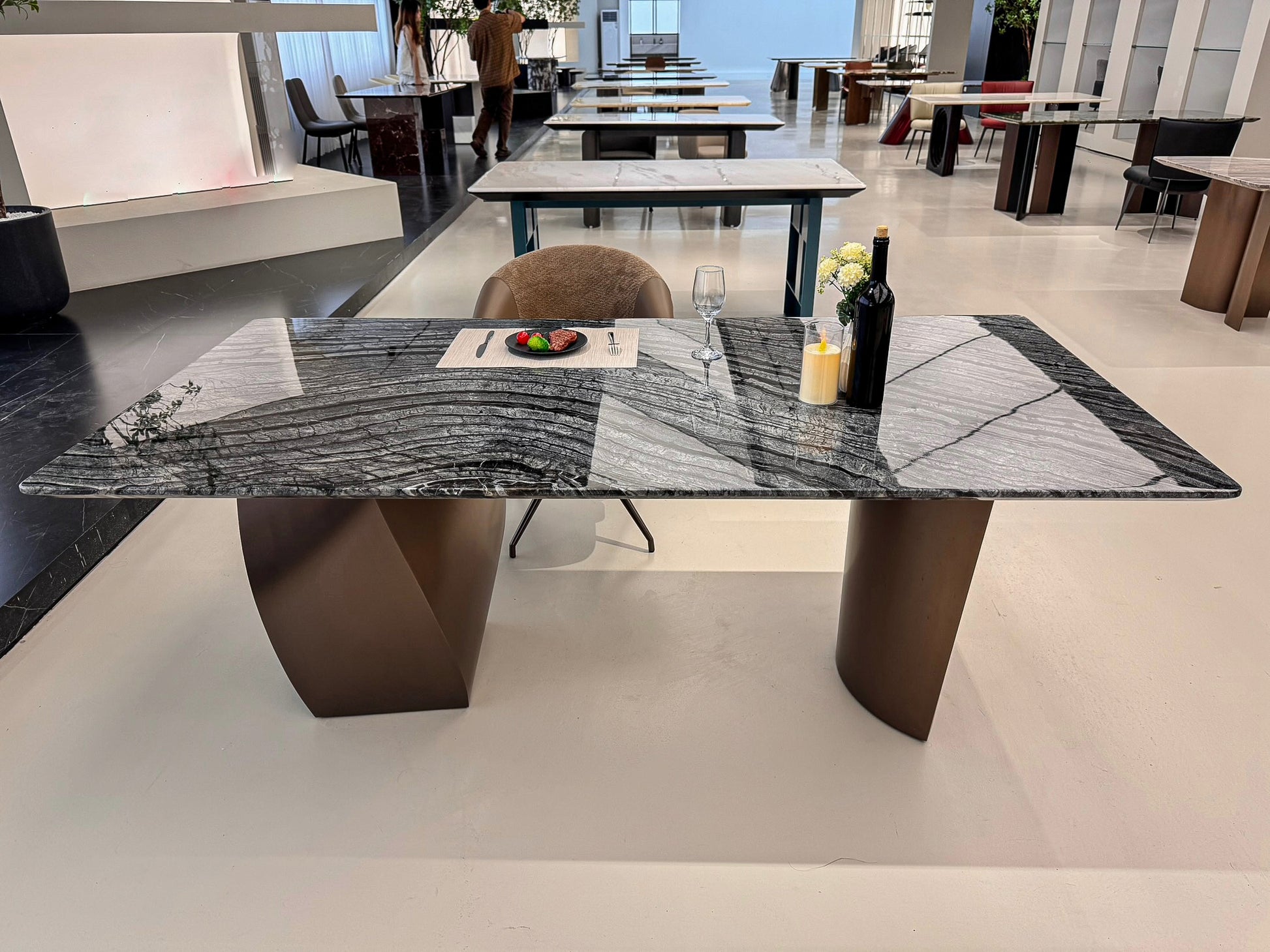 天然大理石の優雅さと無垢材の温もりが融合した、幅200cmのダイニングテーブルです。表面に浮かぶ樹木模様は、自然が生み出した唯一無二の芸術作品。長方形のシンプルな形状と無垢材の脚が、モダンながらも高級感あふれる空間を演出します。家族の食卓を彩る、ラグジュアリーな一枚。毎日の食事をより特別な時間へと変えてくれます。