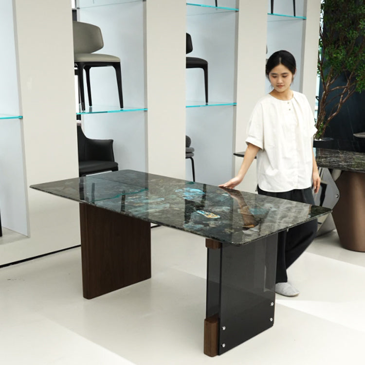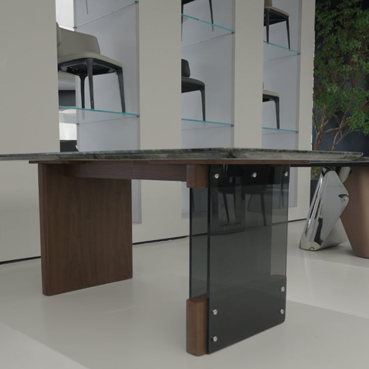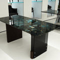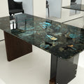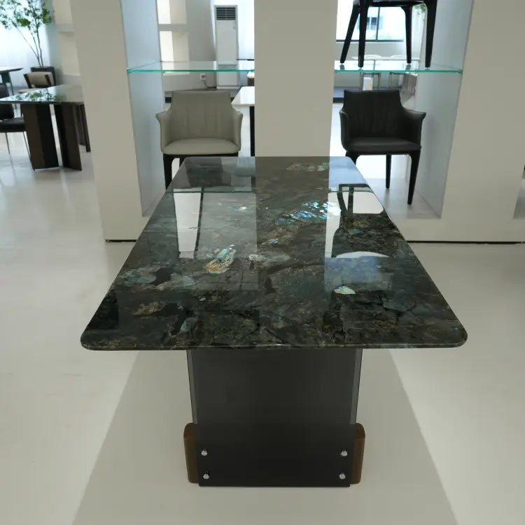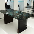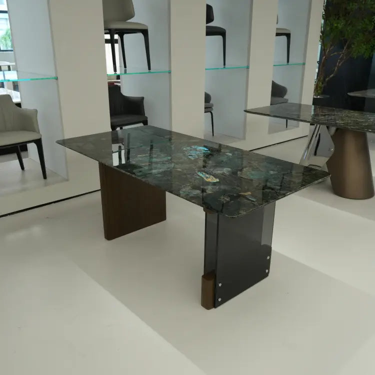 上質な天然大理石を使用した、プラチナダイヤマーブルテーブルです。グリーンとブラックの洗練された色合いが、お部屋に高級感と落ち着きをもたらします。ダイヤモンドのような輝きを放つ大理石の表面は、光の当たり方で表情が変わり、まるで芸術作品のような美しさを演出します。耐久性に優れた天然素材だからこそ、長くご愛用いただけます。上質なインテリアをお探しの方に、ぜひおすすめしたい逸品です。