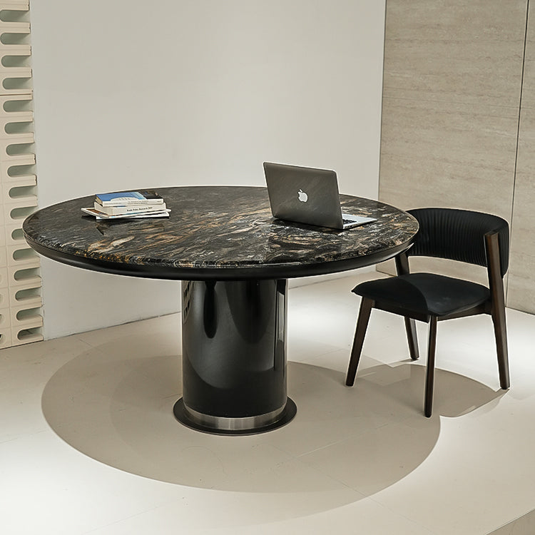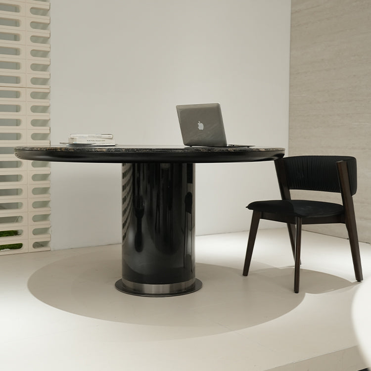 輸入天然大理石ダイニングテーブル 丸テーブル 高級ブラック石調jrjj-6806