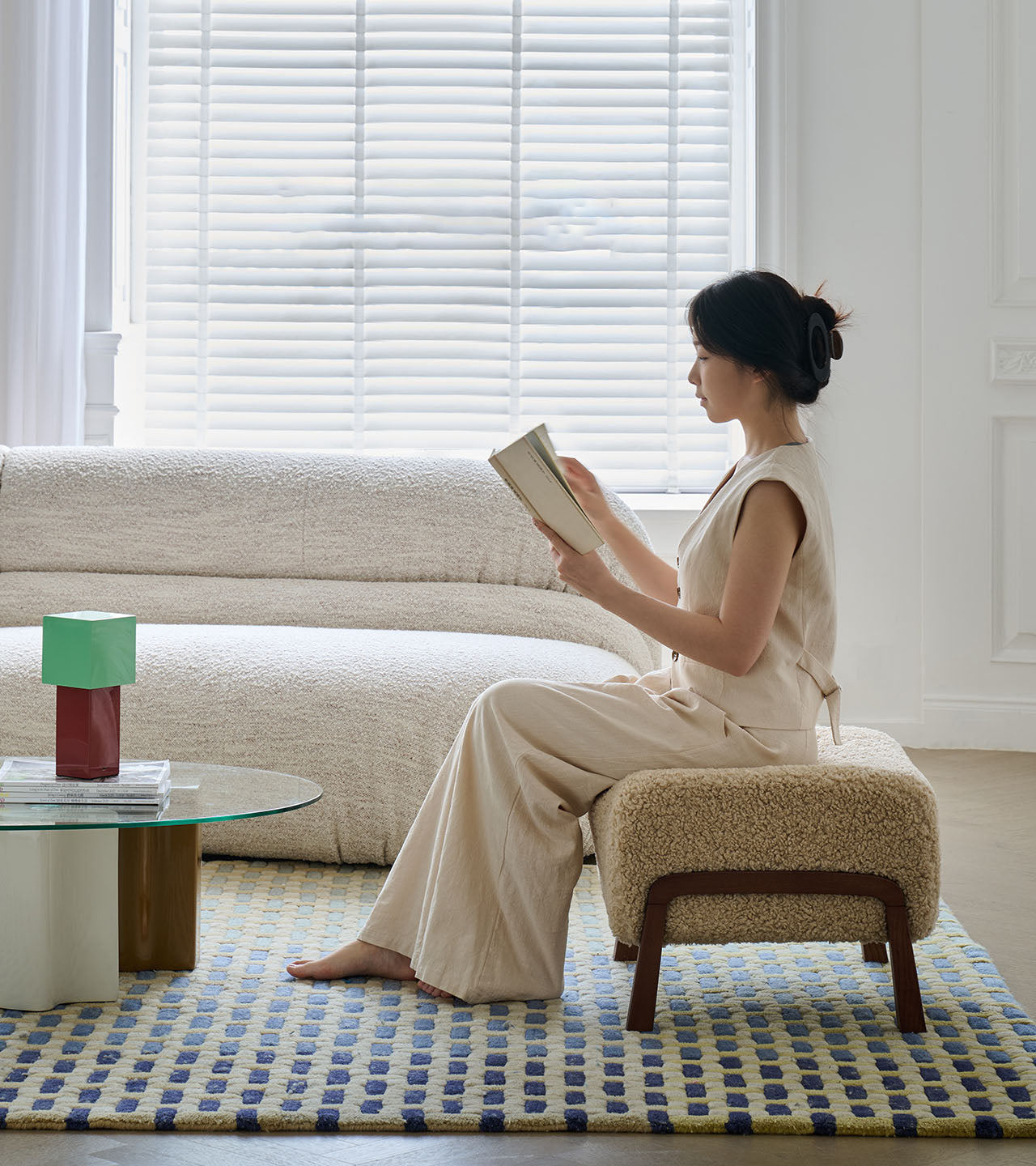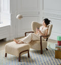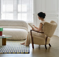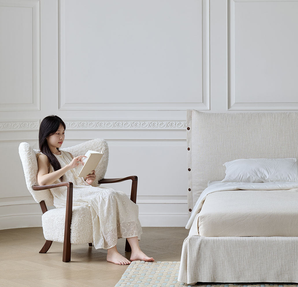 フレンチヴィンテージの優雅さを纏った一人掛けソファチェアです。無垢材の堅牢なフレームと、柔らかなボア生地の座面が調和し、上質なアンティーク調の雰囲気を醸し出します。コンパクトながらも存在感があり、落ち着いた空間に深みを添える洗練されたデザインです。静かな時間をゆったりと過ごすための特別な一脚として最適です。