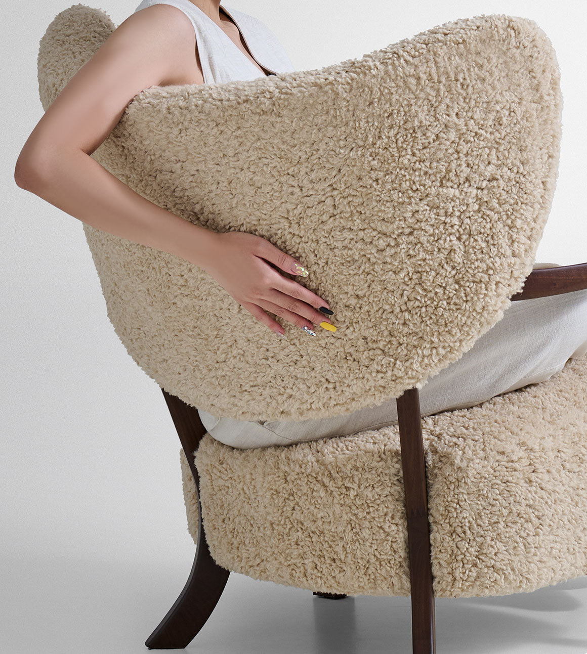 フレンチヴィンテージ風 無垢材 アンティーク調 ボア生地 一人掛けソファチェア my-001