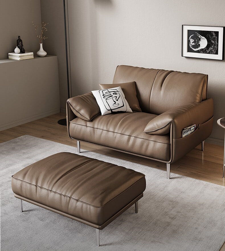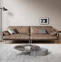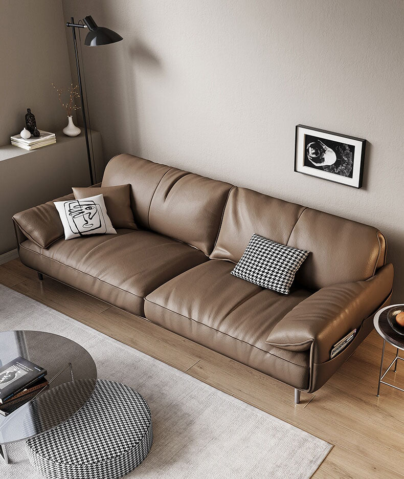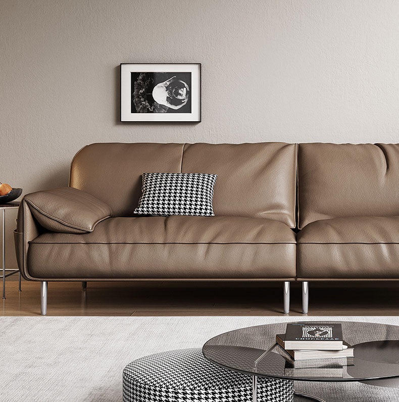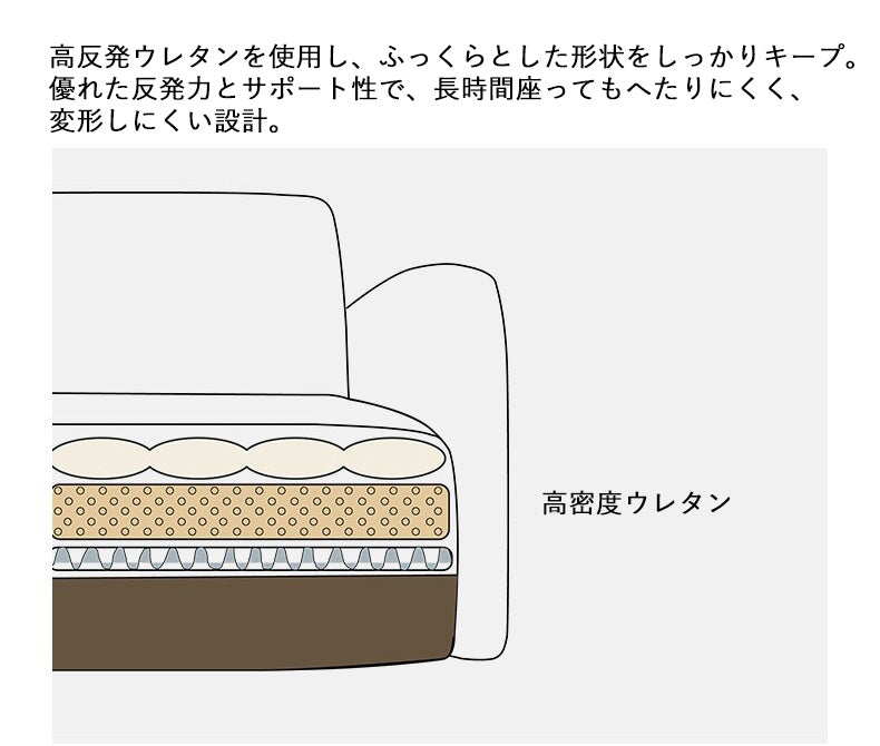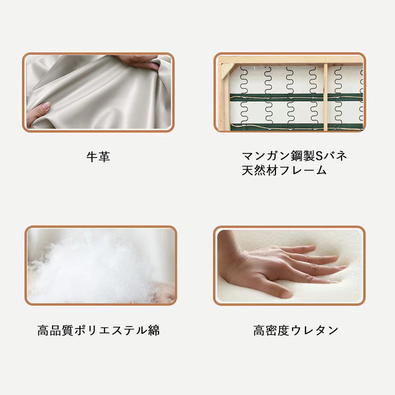 ソファー本体には耐久性の高いナッパ一枚革を贅沢に使用し、マンガン鋼製のSバネと無垢材フレームが確かな耐久性を実現。高品質な高密度ウレタンとポリエステル綿を組み合わせることで、ふっくらとした形状を長時間維持します。優れた反発力とサポート性が座る人の体をしっかり支え、長時間の使用でもへたりや変形を防ぐ設計です。洗練されたモダンデザインとともに、快適さと耐久性を両立させた高級ソファーです。