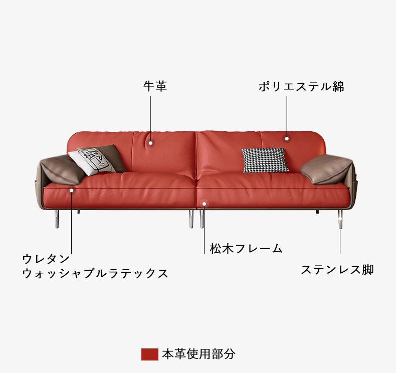 ソファー 本牛革使用高級ソファ モダンなデザイン、高密度ウレタンふっくらとした形状をしっかりキープ xixibg-0001