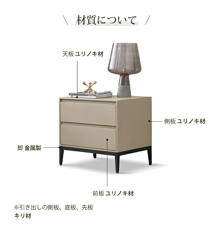 このサイドテーブルは無垢材を使用しており、高い耐久性と美しい質感が特徴です。ナイトテーブルとしても使用でき、便利な収納スペースがあります。シンプルで上品なデザインのため、お部屋の雰囲気を崩さず、お部屋のアクセントにもなります。