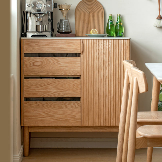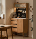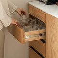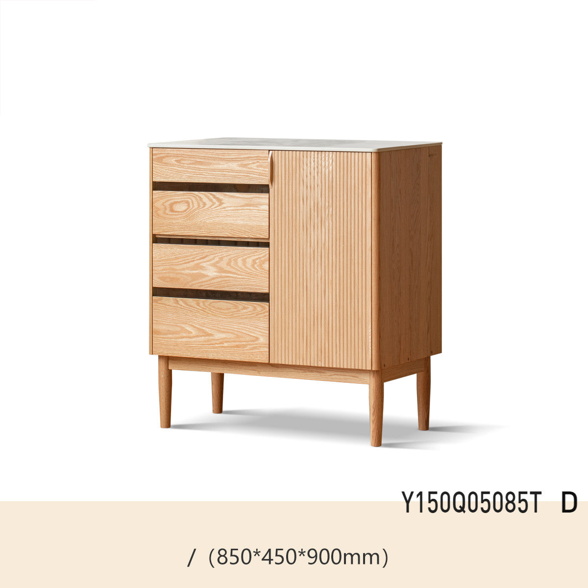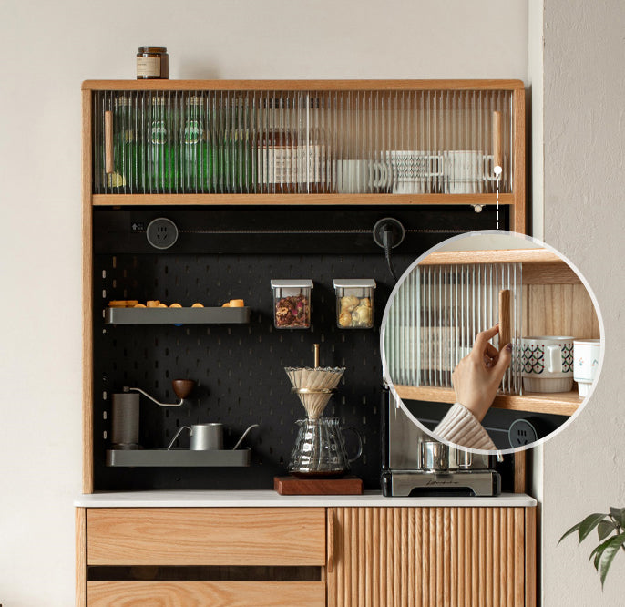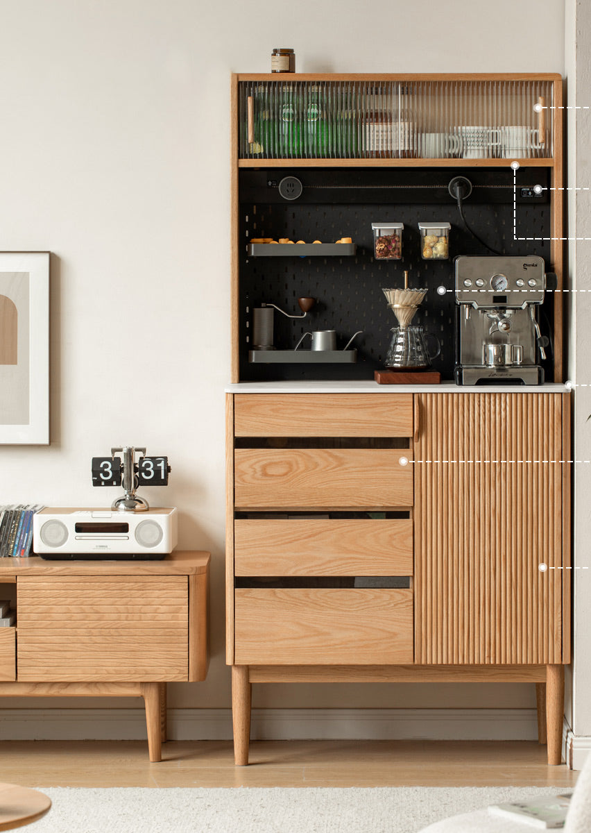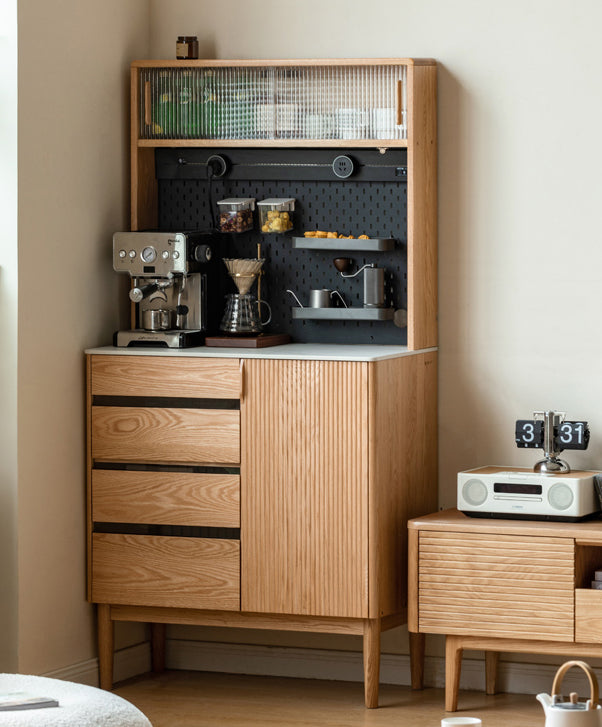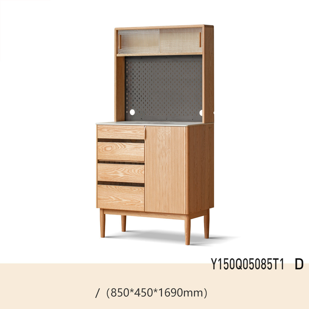 サイドボードキッチン収納「Y150Q05」は、機能的な引き出し式食器棚とカスタマイズ可能な有孔ボードを組み合わせた洗練されたデザインです。効率的な収納スペースを確保し、キッチン周りの整理整頓をサポート。有孔ボードにはフックや棚を自由に取り付けでき、調理器具や小物をすっきり収納可能。使いやすさと見た目の美しさを両立させた、プロの目線で設計された一台です。