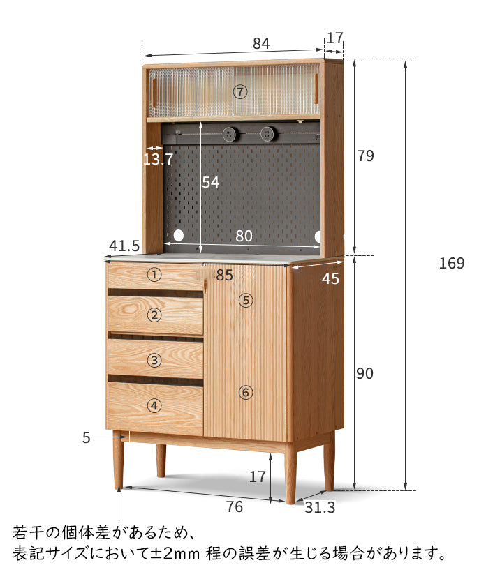 サイドボードキッチン収納 引き出し食器棚収納 カスタマイズ有孔ボードY150Q05