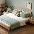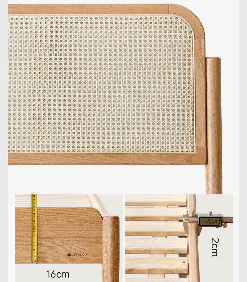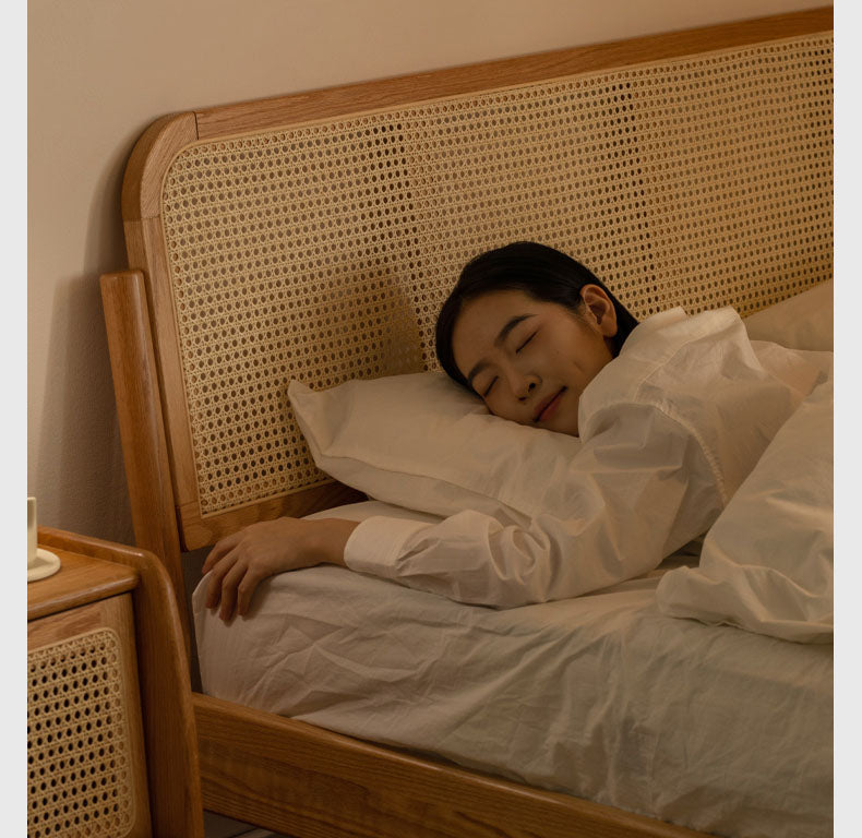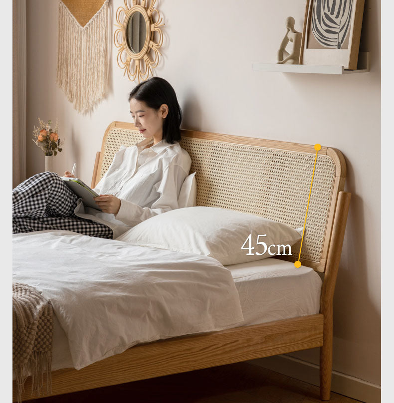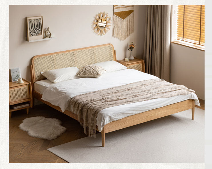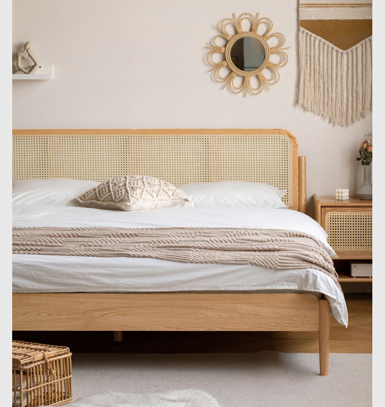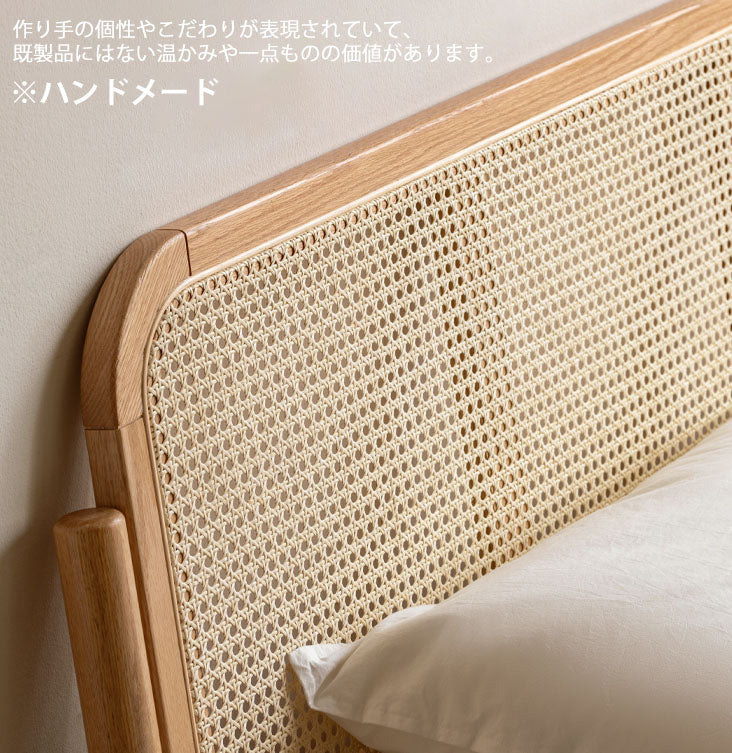 ベッドフレーム 北欧デザイン ハンドメードラタン素材&オーク無垢のフレーム Y49B01