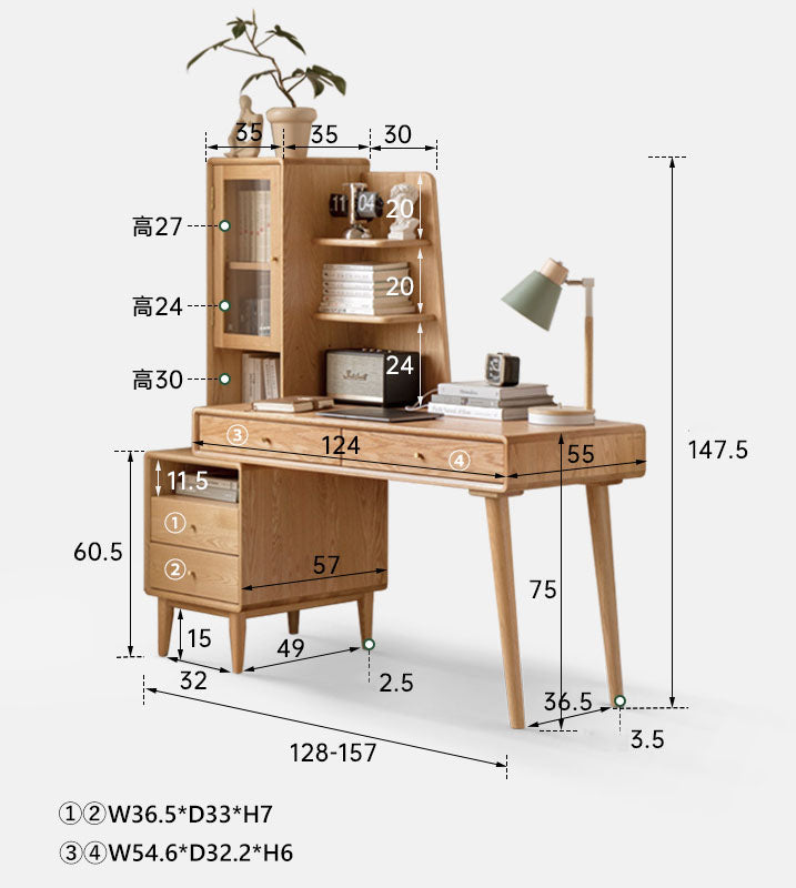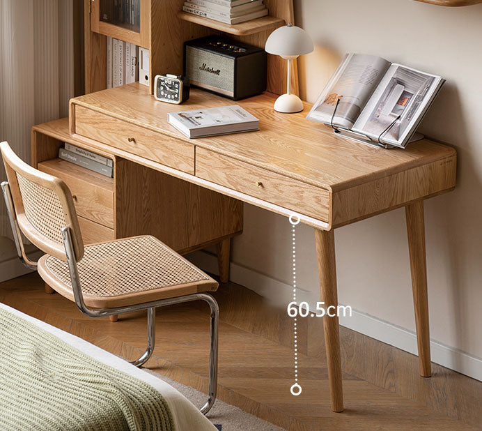 伸長可能なデスクテーブル 収納棚付き優しい印象天然木使用 生活感を隠す収納家具y84x04
